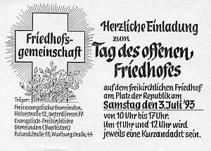 Man wundert sich immer wieder, auf was für kuriose Einfälle die Leute kommen, wenn ihnen die guten Ideen ausgehen. Welcher vernünftige Mensch käme auf den Gedanken, sich darüber den Kopf zu zerbrechen, ob "Gott" - ob das nun ein alter Mann im Nachthemd und mit schlohweißem Bart ist oder nur eine Idee - tot ist oder nicht. Schließlich: wenn "Er" (es soll ja auch Theorien geben, nach denen es eine "Sie" ist) Gott ist, kann er nicht tot sein, ist er aber tot, kann ziemlich sicher ausgeschlossen werden, daß er "Gott" ist. Überlassen wir das weitere Nachdenken anderen und kommen zu dem anderen Flugblatt: da wird freundlichst zum "Offenen Friedhof" eingeladen. Heißa, "dös wird a Hetz´", wie der Österreicher sagt. Was gibt´s denn da: Ikebana für Trauergebinde, heiteres Raten "Wer liegt denn da?", Grillen zwischen Gräbern, Lebenlicht ausblasen oder Gruselgeschichten in der Dämmerstunde? So schlimm wird es schon nicht werden - schließlich wird herzlich eingeladen. Und weil um 17 Uhr der Friedhof schon wieder abgeschlossen wird, kann es auch nicht so gruselig sein. Außerdem: ist ja sowieso längst beides vorüber und vergessen. Aber für eine Sottise noch immer gut. |