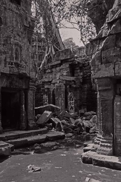 | Angkor Auf der Grundfläche von einem Quadratkilometer wurde im 12. Jahrhundert unserer Zeitrechnung während der Regierungszeit Surjawarmans II. (1113-1145) beim kambodschanischen Angkor eine der geheimnisvollsten Tempelstädte der Geschichte, zugleich die größte der Welt, erbaut: Angkor Wat. Angkor war damals die Hauptstadt des Khmer- Reiches, das neben dem heutigen Kambodscha Teile Vietnams, Thailands und von Laos umfaßte. Ob die gewaltige Anlage, die nach dem weltumspannenden Prinzip der Stufenpyramiden errichtet wurde und im Bau hinduistische Prinzipen verwirklicht sieht, als Tempelmausoleum allein der Verehrung des Gottes Vishnu oder gar der persönlichen Gottheit des Erbauers diente, ist bis heute nicht schlüssig geklärt. Auch Theorien, die das Bauwerk als ein Observatorium oder die Darstellung des Universums erklären, halten sich im wissenschaftlichen Diskurs. Niemand jedoch bestreitet die gewaltige Bauleistung, welche die Architekten vor 900 Jahren dort und im Laufe der folgenden Jahrhunderte in anderen Tempelstädten der gigantischen Anlage auf einer Gesmtfläche von 200 km² zuwege brachten und deren Ausmaße um einiges die architektonischen Hinterlassenschaften der europäischen Antike übertreffen. Nach dem Niedergang des Khmer-Reiches im 15. Jahrhundert verfiel Angkor und wurde allmählich vom Dschungel verschlungen. Erst im 19. Jahrhundert wurde die Ruinenstadt von europäischen Reisenden wiederentdeckt. Bis heute sind einige der zahllosen Tempelanlagen ganz oder teilweise vom Urwald überwuchert. Internationale Forscherteams arbeiten seit Jahrzehnten an der Freilegung, Konservierung und Restaurierung der Gebäude. Die auf Sand und Erde gründenden Sandsteinbauten Angkor Wats, deren Eck-Türme 32 Meter hoch sind und deren Zentralturm 42 Meter mißt, sind mit ihren Reliefs und Götterdarstellungen einzigartig. Umgeben von einem einst 180 Meter breiten Wassergraben und geschützt von einer Außenmauer von 1.000 x 815 Metern Seitenlänge, ist die Tempelanlage von Angkor Wat, heute wieder fast gänzlich freigelegt von überwältigender Größe (rkw/bec). Prof. Dr. Rainer K. Wick hat Angkor Wat und weitere Tempelstädte der Khmer in Angkor besucht. Die beeindruckenden Fotografien, die er mitgebracht hat, sind noch bis 13.4.07, in der Universität Wuppertal ausgestellt. Zu besichtigen täglich 08.00 - 20.00 Uhr. Zur Ausstellung erscheint ein Portfolio mit 10 Originalfotografien von Rainer K. Wick im Format 30 x 45 cm, rückseitig datiert, numeriert und signiert; Auflage 25 Exemplare zum Preis von 150,- €. Die Ausstellung, die am 12.4., 18.00 Uhr mit einer Finissage und einem Lichbildervortrag von Rainer K. Wick beendet wird, findet parallel zur großen Angkor-Ausstellung in der Kunst- und Ausstellungshalle der Bundesrepublik Deutschland in Bonn statt. Die Musenblätter können hier eine Auswahl der Fotografien zeigen.