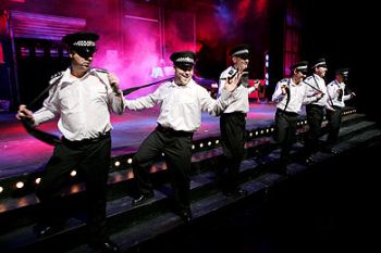 In der Ausstattung von Günther Hellweg (eine heruntergekommene Autowerkstatt, mehr Hobbyraum als professionelle Werkstätte) und mit den peinlichsten, aber genau gezeichneten Kostümen bringt er das Sozialdrama um einen Haufen arbeitsloser Durchschnittskerle, die eine Männerstrip-Gruppe á la "Chippendales" auf die Beine stellen als Schenkelklopfer auf die Bühne. Das Resultat ist ein Saal voller jubelnder, kreischender, euphorischer Zuschauer(-innen).