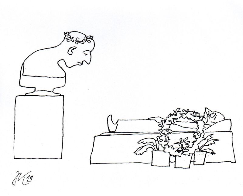 Der Lorbeerkranz, der Stirn und Schläfen schmückt