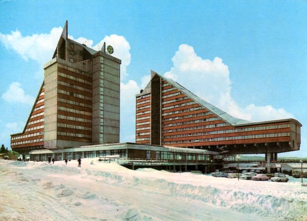 Die dafür aufgebotene Architektur schuf nicht nur wie vielerorts seelenlose Plattenbau-Klötze und landschaftlich unangepaßte Betontürme, sondern zeigte sich mit Blick auf die kapitalistischen Nachbarn und die sozialistischen Bruderstaaten experimentierfreudig mit Anlagen wie z.B. dem Interhotel „Panorama“ in Oberhof und seinem geplanten Pendant in Oberwiesenthal, individuell gestalteten Ferienheimen wie in Schöneck (FDGB), Schöna und Waldau (FDGB) oder leichtfüßig wie bei Ferienanlagen in Ahlbeck, Boltenhagen und Klink. Wie begehrenswert Plätze in diesen Hotels, Ferienheimen oder auch organisierten Camping-Anlagen waren, wissen wir aus der Geschichte.