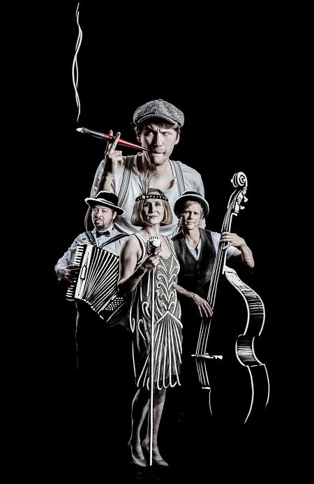 Mit Kreide, Bleistift und Tusche wird in wenigen Augenblicken das Berliner Stadtschloß wieder aufgebaut und die Gedächtniskirche bekommt ihr Dach zurück. Dank Kamera und Groß-Projektion sind die Zuschauer ganz nah dran. Es ist das Lebensgefühl einer besonderen Stadt zwischen den Weltkriegen, dem sich die vier stilecht gekleideten Künstler an diesem Abend verschreiben. Die bei der Schau an die Wand projizierten Zeichnungen sind dabei nur ein Teil des vielfältigen Programms: In einer Symbiose von Musik, Schauspiel und Bild entstehen eindrucksvolle und charismatische Scherenschnitt-Inszenierungen. Der Zuschauer flaniert wachen Auges durch das lebendige Berlin der 20er-Jahre – begleitet und belebt wird dieser Spaziergang durch die Musiker des Trios Größenwahn, die mit viel Humor den Klassikern der damaligen Zeit Leben einhauchen. So empfängt den Zuschauer ein Berlin voller Charme und Schimmer mit offenen Armen. Der Zeichner und Buchkünstler Robert Nippoldt aus Münster wurde bekannt durch seine vielfach ausgezeichnete Buchtrilogie „Gangster“, „Jazz“ und „Hollywood“ über das Amerika der 1920er und 30er Jahre sowie durch seine Zeichnungen für den New Yorker und das Time Magazine. Lotta Stein (Gesang), Christian Manchen (Piano) und Christoph Kopp (Kontrabaß) sind seit Jahren erfolgreich mit verschiedenen Formationen in der Musik-Szene aktiv. Als Trio Größenwahn tragen sie die Klassiker der 1920er und 30er Jahren mit ebenso virtuosen wie einfühlsamen Interpretationen in die heutige Zeit. Freitag | 09.12.22 | Einlaß 19:00 Uhr | Beginn 20:00 Uhr |