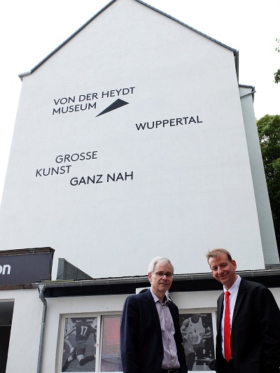 Wuppertaler Immobilienunternehmen wirbt für das Von der Heydt-Museum Wuppertal Giebelwand mit Museums-Slogan Das seit einigen Wochen frisch sanierte Gründerzeithaus an der Sonnborner Straße 22 in Wuppertal-Elberfeld hat seit einigen Tagen noch einen zusätzlichen Hingucker: An der Seitenfläche macht der Werbe-Slogan „Von der Heydt-Museum Wuppertal - Große Kunst ganz nah“ auf das Museum aufmerksam.  Die Hausgiebel-Werbung fällt nicht nur Autofahrern der vielbefahrenen B7 sofort auf, sondern auch den Schwebebahn-Fahrgästen, die an der Haltestelle Zoo/Stadion ein- und aussteigen. Von hier aus ist man ein paar Stationen weiter auch gleich am Museum. Die Idee stammt von dem Immobilienentwickler renaissance Immobilien und Beteiligungen AG, der dem Museum die Werbefläche kostenlos zur Verfügung stellt.  Vorstand Christian Baierl verzichtet gerne auf die so entgangenen fünfstelligen Werbeeinnahmen: „Als Kulturfreund unterstütze ich sehr gerne die Eckpfeiler der Wuppertaler Kulturinstitutionen. Das ist für mich immens wichtig und gibt mir zudem auch persönlich ein sehr gutes Gefühl“. Sein Unternehmen realisierte bereits für die Wuppertaler Bühnen Sprüche und Zitate auf drei Giebelwänden seiner Häuser.  Museumsdirektor Dr. Roland Mönig freut sich über die Kooperation: „Wir freuen uns sehr, daß das Von der Heydt-Museum an immer mehr Stellen in der Stadt sichtbar wird. Jede und jeder wird so auch aus der Schwebebahn heraus an das Angebot des Museums erinnert und daran, daß diese großartige Sammlung herausragender Kunst nur ein paar Haltestellen weiter für alle an sechs Tagen die Woche zugänglich ist! Gerade mit Blick auf unser Jubiläum – 2027 feiern wir 125 Jahre Von der Heydt-Museum – möchten wir alle Wuppertaler einladen, die Kunst (wieder) zu entdecken.“ Das Von der Heydt-Museum macht mit dem Slogan „Große Kunst ganz nah“ bereits Werbung auf einem Bus und einem Geschäft in Wuppertal. Die Giebelwand ist nun eine ganz neue Möglichkeit, mit der das Museum in der Stadt immer präsenter wird und noch mehr auf sich aufmerksam machen kann. Mit über 2.000 Gemälden, 700 Skulpturen, mehr als 800 Fotografien und 30.000 grafischen Arbeiten zählt das Von der Heydt-Museum Wuppertal zu den bedeutendsten Kunstmuseen Deutschlands. Besonders durch spektakuläre Sonderausstellungen und namhafte Künstler – u.a. Pablo Picasso, Claude Monet und Max Beckmann – gelingt es dem Haus regelmäßig, Kunst für ein breites Publikum erlebbar zu machen.  Von der Heydt-Museum Wuppertal  Turmhof 8 | 42103 Wuppertal  T +49 (0) 202 563 2552  Info.museum@stadt.wuppertal.de  www.von-der-heydt-museum.de  |