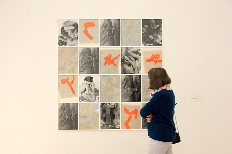Hans ARP u.a. zu sehen waren. Eine der dort gezeigten Skulpturen steht heute, fast zugewachsen, vor der Gesamtschule Uellendahl-Katernberg an der Kruppstraße in Wuppertal. Seit 1964 lebte er in Wuppertal und unterrichtete an der hiesigen Werkkunstschule, und seit 1973 an der Gesamthochschule daselbst. Seine künstlerische Entwicklung entwickelte sich von Skulptur und Grafik hin zu Aktion und Performance in der 1970er Jahren, zur Fotografie (1980er) und später zu seriellen Arbeiten. In der Ausstellung finden sich Skulpturen, Tuschezeichnungen und fotographische Kollagen aus der Sammlung des Museums, ergänzt um Werke aus dem Nachlaß. Exemplarisch für seine Fotoarbeiten kann „Liebe, Liebe, Liebe“ von 1986 gelten (Distribution II), zwanzig weiße Rahmen je 30x 40 cm als Hochformate in vier Reihen a fünf übereinander angeordnet. In diesen Rahmen wechseln zehn Schwarz- Weiß- Fotografien (ineinander verschränkte nackte weibliche Körper, ein männlicher Rückenakt Doppelbelichtung mit Aufschrift „Wut“) mit zehn Aquarellen, davon fünf mit einem orangenen Motiv und insgesamt fünf geschriebenen Wörtern: „Wut, Schande, Neid, Rache und Gewalt“. Das Verhältnis von Frau und Mann erschien Jendriztko also nicht unproblematisch. Auffällig ist bei dem Werk, daß die Aquarelle nicht exakt ihren Rahmen ausfüllen. Der Untertitel bezieht sich auf Garcia Lorca’s Theaterstück „Das Publikum“ und das Werk als solches auf den Begriff der Bildersprache. Die Fotos der nackten Frauenkörper entstanden bei seinen „Intim-Performances“, kurzen Szenen, die fotografisch festgehalten wurden und bei denen er selbst stets auch nackt posierte. Die „Teilnahmslosigkeit der Bäume“(1989) erinnert mit zahllosen kleinen Porträtfotos an Widerstandskämpfer in Italien. In den „Regelwerken“ - Fotoarbeiten mit frei erfundenen, gemalten Schriftzeichen ab ca. (1990) - greift er das Thema der Bildersprache wieder auf, wobei die Sinnfreiheit der Schriftzeichen eine verbale Kommunikation im engeren Sinne ausschließt. Er starb, nachdem Fans von Borussia Dortmund ihn im September 2009 im Hauptbahnhof Wuppertal umgerannt hatten. Sein breitgefächertes ideenreiches Werk hätte vielleicht auch einen größeren Rahmen verdient.
