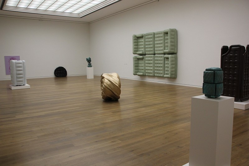 Die Zeit um 1900 scheint es ihm besonders angetan zu haben, setzt er seine Skulpturen im weiteren Verlauf des Rundgangs doch mit Gemälden von Edvard Munch und Paula Modersohn-Becker in Beziehung. In Raum 2 („Nachtlager“) hat er vieles, was ihn im Laufe des Lebens interessiert, hat quasi abgestellt. Hinter metallischen, an Gerüstmaterial erinnernden Stangen sind an einer Bildwand Gemälde von Ferdinand Hodler (1853-1918) oder Else Lasker-Schüler (1869-1945) zu sehen. Gegenüber befindet sich das Werk „ohne Titel“ seines Lehrers Jannus Kounellis, deren Gipsabdrücke berußt sind. Mit seinen Dirty Corners (im 3. Raum) (ca. 2m hohe Raumecken aus Keramik, Lüsterglasur und geschmiedeten Stahlsockeln) wird der Raum strukturiert. Der Zusammenhang mit den beiden Gemälden von Munch an dessen Wänden erschließt sich nicht unmittelbar. Die vergoldeten Keramikabformungen (Stellar Stoner) neolithischer Steinformen erscheinen wie Sterne in einem Raum mit Werken von Modersohn-Becker. Im letzten Raum endlich geht es um weißglasierte Surfbretter auf dem Parkettboden, auf denen gelbe Zitronen, ein Eimer oder auch eine unbekleidete weiße Schöne liegen(Wayfarers). Eine große gelbe Zitrone wird von einem Mann, von dem nur der Oberkörper über das Parkett herausragt, vielleicht durch Wasser geschoben. Mit diesen Keramiken und ihren farbigen Applikationen, hier Zitronen in Neapelgelb, sucht der Künstler die Auseinandersetzung mit den Florentinern Luca und Andrea della Robbia aus dem 15. Jahrhundert.