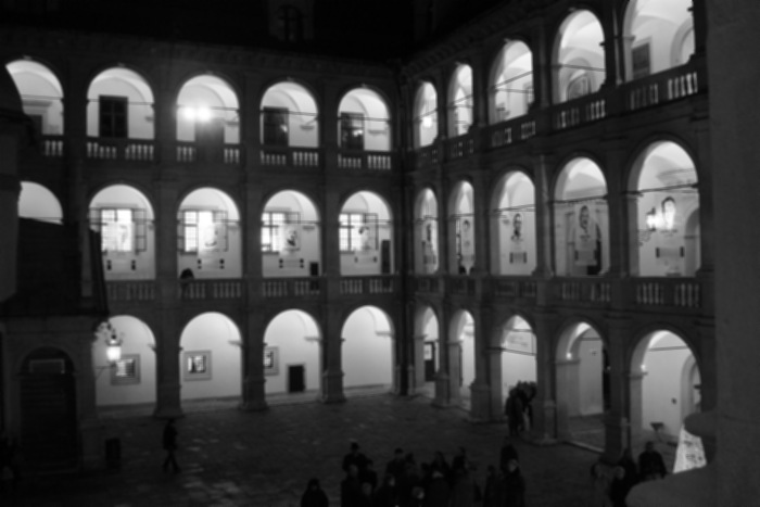 Im Hof, verhext von milchigem Dämmerschein,