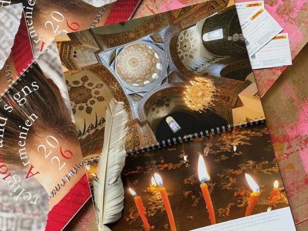 Interessenten unter Euch können bei dieser Gelegenheit den Kalender „religion and signs -- Armenien 2026” und andere Kunst im Haus Glaser betrachten.