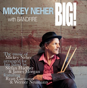 Der Schlagzeuger Mickey Neher, bekannt als Drummer und Leader der Band Mickey´s Monkey Party und Drummer des Spardosen Terzetts, bei dessen Auftritten er zeigt, was man au einer einzigen Snare und einem Solo-Becken alles rausholen kann, hat für „BIG!“ diesmal ganz groß ausgeholt. Mit der illustren Bigband „Bandfire“ unter Stefan Hüfner an seiner Seite und der Unterstützung der kongenialen Arrangeure und Co-Komponisten Stefan Hüfner und James Morgan konnte er sich den Wunsch erfüllen acht eigene Kompositionen für großes Ensemble für eine LP einspielen. Mit erstklassiger Technik mit Mikrophonen von Fitschgetau Recording sorgte Felix Lenniger für einen brillanten Sound und abgemischt von Stefan Hüfner und von Fritz Fey gemastert ist ein ebenso exquisiter wie exklusiver Tonträger in geringer Auflage auf 180 g Vinyl daraus geworden.