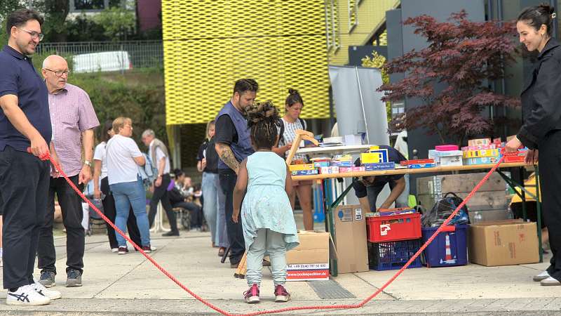 Glücklicherweise gab es von Anfang an, schon allein durch das Quartiersbüro, viel Interesse an einem Stadtteilprojekt. „Mit dem Leiter, Andreas Röhrig, haben wir überlegt, was es schon alles hier gibt, welche Akteure da sind und welche man noch ansprechen sollte. Wir haben natürlich auch Klinken geputzt, sind in den Kiosken und Supermärkten gewesen und sind mit den Betreibern in den Austausch gekommen. Wir durften Plakate sowie Postkarten in ihren Schaufenstern ausstellen“, erzählt Rudzki über ihr Engagement während der Planungen. Partizipation beginne mit Vertrauen. Und der Erfolg gab ihr recht. „Durch das Festival und den gemeinsamen Prozess konnten wir gelebte Demokratie im Alltag in direkter Nachbarschaft sichtbar machen. Das Festival StraßenOase! ließ spüren, was Demokratie bedeutet, nämlich miteinander reden, Lösungen finden, Fehler zulassen, die Ideen und Meinungen anderer akzeptieren und verstehen wollen, neugierig bleiben, sich begegnen und trotzdem gemeinsam weitermachen.“ Das Festival fand am 13.Juli 2025 statt und zeigte eindrucksvoll, was Mitgestaltung im öffentlichen Raum bedeuten kann. Besonders ein Satz ist Leila Rudzki an diesem Tag im Kopf geblieben, der da lautet: „Heute wurde hier Demokratie spürbar“.