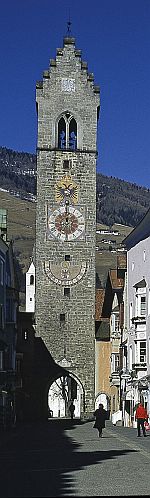 ist ein Juwel Sterzing, die nördlichste Stadt Italiens, hatte schon zur Römerzeit strategische Bedeutung Jetzt schlägts zwölf. Es ist nicht zu überhören. Die Glockenklänge ertönen pünktlich. Aber woher kommt das Läuten? Vom Zwölferturm schallts herunter. Natürlich. Die Einheimischen nennen ihn zärtlich Zwölferturm, weil täglich um 12 Uhr die Glocke geläutet wird. Stadtturm heißt er offiziell, aber Zwölferturm, das hört sich tatsächlich liebevoller an. Und er ist das unverwechselbare Wahrzeichen der Stadt Sterzing. Der 46 Meter hohe Turm trennt die Altstadt von der Neustadt, und wurde 1470 erbaut. Der ursprünglich rote Spitzhelm wurde 1867 ein Raub der Flammen und durch einen steinernen Treppengiebel ersetzt. Eine Besteigung des Turms ist ein besonderes Erlebnis, denn man blickt nicht nur hinunter auf die prächtigen Giebel, die mächtigen Bürgerhäuser, die bezaubernden Gassen, die malerischen Einkaufsstraßen und die mittelalterlichen Plätze des 6300-Einwohner-Städtchens, sondern auch weit darüber hinaus. Unerwartete Ausblicke auf die Bergkulisse lassen einem das Herz höher schlagen. Nördlichste Stadt Italiens Sterzing, 948 Meter hoch gelegen, ist nicht nur der Hauptort des Wipptals, nein, Sterzing ist die nördlichste Stadt Südtirols, ja sogar die nördlichste Stadt Italiens. Und was für eine. Reich an Geschichte, hatte Sterzing schon zur Römerzeit strategische Bedeutung, weil der Alpenübergang über den Brenner kontrolliert werden konnte. 15 vor Christus entstand unter dem römischen Heeresführer Drusus, dem Stiefsohn von Kaiser Augustus, die Siedlung Vipitenum. Noch heute heißt Sterzing auf italienisch Vipiteno. Erst sehr viel später, 1180, wird der Name Sterzing das erste Mal urkundlich erwähnt, und genau 100 Jahre danach wird Sterzing durch Meinhard II., den bekanntesten Fürsten des 13. Jahrhunderts, der übrigens auch der Initiator war, dass Tirol ein eigenständiges Land wurde, das Stadtrecht verliehen. Von 1400 bis 1600 erlebt Sterzing seine Blütezeit, weil im Wipptal und den nahen Tälern Pflersch und Ridnaun Erz und Silber abgebaut werden. Der Wohlstand lockt nicht nur Handwerker an, sondern auch reiche Familien zieht es in die Stadt. Unter anderem die Fuggers aus Augsburg. Und just in dieser Zeit wird der Zwölferturm (1468 bis ‘72) erbaut, der die Stadt noch heute in Alt- und Neustadt teilt. Als um das Jahr 1600 herum die Silbervorkommen zur Neige gehen, bedeutet dies gleichzeitig den wirtschaftlichen Niedergang der Stadt. Erst vermehrte Handelstätigkeiten Ende des 19. Jahrhunderts - und - durch das Einsetzen des Fremdenverkehrs, kommt die Wende zum Besseren. Das Flair des Wohlstandes vergangener Zeit Bis zum heutigen Tag hat die Stadt ihr Flair aus der Zeit des größten Wohlstands fast bis ins kleinste Detail erhalten. Der Name Neustadt rührt daher, weil ein Brand im Jahr 1443 einen Großteil von Sterzing zerstörte, und der neu aufgebaute Stadtteil eben diesen Namen erhielt. Und es entstehen die Laubengänge. Diese kennzeichnen, wie auch die in Bozen, Meran oder Brixen, jede Handelsstraße in Tirol. Die Laubengänge waren und sind nicht nur schön anzusehen, in erster Linie schützten sie früher die Ware vor Hitze und Nässe. Nicht wenige behaupten, daß die Neustadt von Sterzing die schönste Straße Südtirols ist. Eine Flaniermeile par excellence! Das auf jeden Fall. Sterzing, das Tor zu Südtirol, ist nach wie vor ein Juwel mit zahlreichen Sehenswürdigkeiten. Und die mittelalterliche Kulisse, die schmucken Häuser und die mit Blumen geschmückten Fassaden tun ihr Übriges, um einzutauchen in längst vergessene Zeiten. Architektur und historische Funde Da ist zum Beispiel das stattliche Rathaus, das in den Jahren 1468 bis ’73 erbaut und 1524 um einen Prunk-Erker bereichert wurde. Der gotische Ratssaal gilt als der schönste in ganz Tirol, auch wegen seiner Wandtafeln und seiner Balkendecke. Im Lichthof des Rathauses kann eine Kopie des Mithrasteins mit der Darstellung des persischen Lichtgottes Mithra besichtigt werden. Das Original wurde 1589 in der Nähe der Ortschaft Mauls unweit von Sterzing gefunden, und befindet sich im Archäologiemuseum zu Bozen. Im Lichthof zu sehen ist ebenso ein römischer Meilenstein des Septimius Servius, eines von 146 bis 211 lebenden Kaisers; der Stein wurde 1979 in Sterzing ausgegraben.
