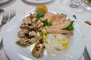 - oder fahren Sie mit einem kleinen Linienschiff etwa eine halbe Stunde über den Golf von Triest in die entzückende kleine, venezianisch anmutende Hafenstadt Muggia und essen Sie dort ebenso exzellent, aber preislich wesentlich günstiger in der Trattoria Ai Due Leoni: trieste-gorizia.ai-due-leoni.html