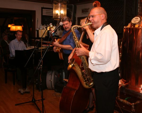 Jazz S(w)ingtet in Remscheid Daß das Transatlantic Jazz S(w)ingtet auf seiner Deutschland-Tournee (6.000 km und 19 Konzerte in 18 Tagen) am 1. Mai auch in Remscheid Station machte, ist dem Remscheider Jazz-Freund Peter Bornemann zu verdanken. Bornemann, Jazz-Impresario aus Leidenschaft und in der Bergischen Stadt längst eine Institution, hat mit diesem Gastspiel des international hochkarätig besetzten Ensembles seinen fast 100 Gästen in der intimen Atmosphäre der Ehringhauser Hausbrauerei Richard Becker eine echte Perle präsentiert.