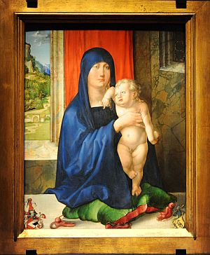 So sehr Dürer als autonomes Individuum und emanzipierter Künstler, der genaues Beobachten zur Richtschnur seiner Kunst machte, ein Mensch der heraufziehenden Moderne war, so sehr blieb er der Glaubenswelt seiner Zeit verbunden. Davon zeugen neben den Tafelbildern mit religiösen Themen vor allem seine ausdrucksstarken frühen grafischen Zyklen, so die Holzschnittfolge der „Apokalypse“ (1497/98) und des „Marienlebens“ (1502-1504/05), Blätter, die gleichermaßen durch