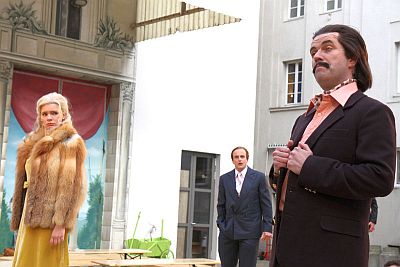 Martin Pfaff hat Carlo Goldonis turbulente Verwechslungs-Komödie um den stets hungrigen und mittellosen Diener Truffaldino für das Landestheater Detmold mit einfachsten Mitteln in Szene gesetzt und sich einzig auf die Wirkung des Wortes und der burlesken Charaktere der Commedia dell´arte verlassen, der Goldoni frischen Schwung gegeben hat. Er ist damit richtig gefahren. Truffaldino, der sich – wie er glaubt schlau - gleich bei zwei Herren verdingt und damit für heilloses Durcheinander sorgt, ist eine Paraderolle für jeden Komödianten. 1745 ist der „Diener zweier Herren“ erstmals aufgeführt worden, 150 Jahre nach Shakespeares dramatisch fast stets unerträglich überhöhten Verwechslungskomödien – Goldoni wirkt im Vergleich spritzig und volkstümlich. Die wichtigsten Figuren der Commedia wie Pantalone (Markus Hottgenroth), Dottore (Stefan Clemens), Brighella (Joachim Ruczynski), Truffaldino, der ein wenig zu oft „Scheiße“ schreit (Robert Andrej Augustin) und Smeraldina (Kerstin Klinder) treten in ihren archetypischen Rollen auf, Martin Paff hat sie 250 Jahre danach vor allem sprachlich modernisiert, dennoch traditionell angelegt. Der Degen wird durch die Pistole ersetzt, der Schuldschein durch den Scheck. Allenfalls hätte das Tempo noch ein wenig forcierter sein dürfen.
