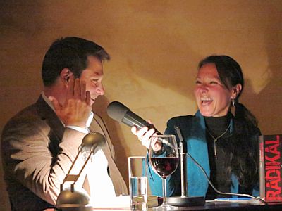 Yassin Musharbash, 1975 geboren, hat einen jordanischstämmigen Vater und eine deutsche Mutter. Er studierte Arabistik und Politologie, arbeitete als Journalist für verschiedene Zeitungen, derzeit für „Die Zeit“ und stellte seinen Politthriller „Radikal“ vor. In der Fachwelt gilt er als Terrorismusexperte. Mit diesem Wissen schrieb er einen Roman über den Islam in Deutschland oder vielmehr über dessen Auswüchse und Anfeindungen. Er selber ist übrigens gar kein Moslem, kennt den Koran aber in- und auswendig.