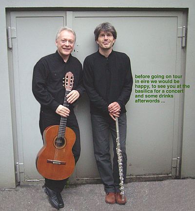 Matthias Nahmmacher (Flöte) und Marco Schmidt (Gitarre) - präsentiert vor dem Aufbruch zu seiner Irland-Tournee sein neues Programm Im Anschluß gibt es Gelegenheit zu Gesprächen und einem Gläschen. Die "basilica" befindet sich in der Reinshagener Str. 106 in 42875 Remscheid.