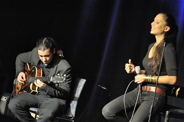 Das Duo Joyce van de Pol und Jean Yves Braun am 18. Januar 2013 auf der Studiobühne von Schloß Hardenberg in Velbert Neviges