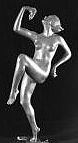 Aber was war das Faszinierende? War es der fast rechtwinklig zurückgebogene Oberkörper des grazilen Mädchens, dessen linkes Bein federnd bis in die Zehenspitzen dem Ganzen Halt bot? Oder war es das rechte Bein, im Schritt nach vorn leicht angewinkelt und den Fuß gestreckt, um so in der Bewegung zu verharren, damit der Betrachter den leidenschaftlichen Tanzschritt noch erahnen kann? Oder war es, die Linie des Oberkörpers und des Mädchenkopfes nach hinten verlängernd, der rechte, ausgestreckte Arm mit der leicht abgeknickten Hand, die drei schmale Bänder hielt? Waren es diese ‚seidenen‘ Bänder, die der Dynamik des Tanzschrittes folgend, sich zu schmalen, bronzenen Parallelkreisen formten, um so den Sockel der Figur aufzufächern? Oder war es gar der linke Arm, der mit anmutiger Geste in den Freiraum des von den Bändern gebildeten Kreises ragte?