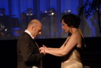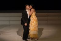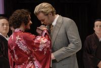 Mit Wuppertals beliebter Sopranistin Elena Fink ebenfalls hochkarätig besetzt tritt eine O Lia San auf den Plan, die mit Partner Stephan Boving gleichfalls die Sympathien des fast ausverkauften Hauses hatte. Spritzig das Duett "Meine Mama war aus Yokohama" mit einer wundervollen Choreographie (nicht der einzigen, die Szenenapplaus verdiente und bekam) und brillant ihre Koloratur im Wettstreit mit der Solo-Flöte des Orchesters (Catarina Trier). Wunderbares Drumherum Und drumherum: Kimonos und Mode der 20er Jahre, schicke Hüte und Bambusschirme, Schwerttänzer und Uniformen und später Ungarn in all seinen schönen Kostümen und Farben. Die Kostümschneiderei hatte die Entwürfe Markus Pysalls prächtig verwiklicht - eine Augenweide.