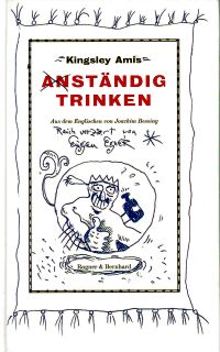 Vor fünf Jahren erschien bei Rogner & Bernhard erstmals in Deutschland Kingsley Amis´ „Anständig trinken“, eines der genialsten Trinkerbücher seit Wenedikt Jerofejews grandiosem Säufer-Poem „Die Reise nach Petuschki“, M.A. Numminens „Der Kneipenmann“ und Frank Schulz „Hagener Trilogie“. Einen feinen, festen Umschlag hatte man darum gemacht, ein Lesebändchen appliziert. Die köstliche Übersetzung hatte Joachim Blessing besorgt, die nachgerade genialen Illustrationen und den Buchschmuck steuerte bei dieser Ausgabe Eugen Egner bei, selber als Fachautor zum Thema mit seinem einzigartigen Werk „Aus dem Tagebuch eines Trinkers (Das letzte Jahr)“ weit über die Grenzen des Landes bekannt und von Blaukreuz und den Anonymen Alkoholikern gefürchtet und verhaßt. Dem wunderbaren Buch war seinerzeit nur eine kurze Verweildauer auf dem Buchmarkt vergönnt, hatten sich doch die völlig humorlosen Amis-Erben (allerdings erst nach Drucklegung und Veröffentlichung) vehement gegen die Form der Illustration gewandt. Das Buch mußte – eine Affenschande – verramscht und durfte in dieser Form nicht neu aufgelegt werden. Was für ein Verlust für den Buchmarkt (nicht nur für den Verlag)! Der konnte auch durch die recht hübsche rororo-Taschenbuch-Ausgabe im Jahr 2010, wenn auch in der bewährten Übersetzung von Joachim Bessing, nicht ausgeglichen werden.