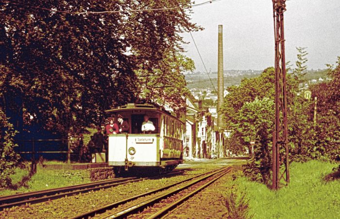 1959 wurde die Bergbahn gegen den Willen der Bevölkerung und unter scharfem Protest von der Stadtverwaltung stillgelegt und restlos abgebaut. Diese angebliche Sparmaßnahme erwies sich nicht nur als schrecklich dumm, sie reiht sich in eine ganze Kette solcher fürchterlichen Abriß-Dummheiten in der Bergischen Metropole.