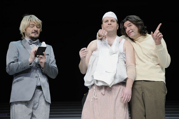 Während Büchel also vor Geiz geifert und alle die, die ihn um Geld angehen des Diebstahls und der Völlerei verdächtigt, verleumdet und beschimpft, sind alle anderen inklusive seiner Kinder scharf auf seine Moneten. Die sind vielleicht noch schlimmer als Harpagon, sie reden von Treue, Liebe und Großmut und sind letztlich doch nichts anderes, als geldgeile Schmarotzer. Die Besetzung der weiteren Rollen in Essen ist exzellent. Floriane Kleinpaß als Tochter Elise in grünen Tüll-Mini-Kleid wirkt wie eine Barbie-Puppe und bleibt eisig-unemotional. Stefan Diekmanns als Sohn Cléante begehrt eben die junge Frau, die sein Vater ehelichen will und pokert mit über Mittelsmänner vom Vater zu Wucherzinsen geliehenen Geldern um die Gunst der jungen Marianne.