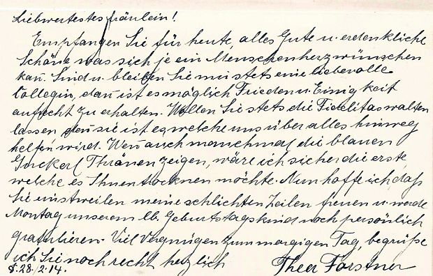 Ein Glückwunsch, vor 100 Jahren geschrieben