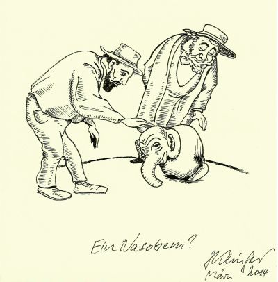 einher das Nasobem, von seinem Kind begleitet. Es steht noch nicht im Brehm. Es steht noch nicht im Meyer. Und auch im Brockhaus nicht. Es trat aus meiner Leyer zum ersten Mal ans Licht. Auf seinen Nasen schreitet (wie schon gesagt) seitdem, von seinem Kind begleitet, einher das Nasobem. Christian Morgenstern |