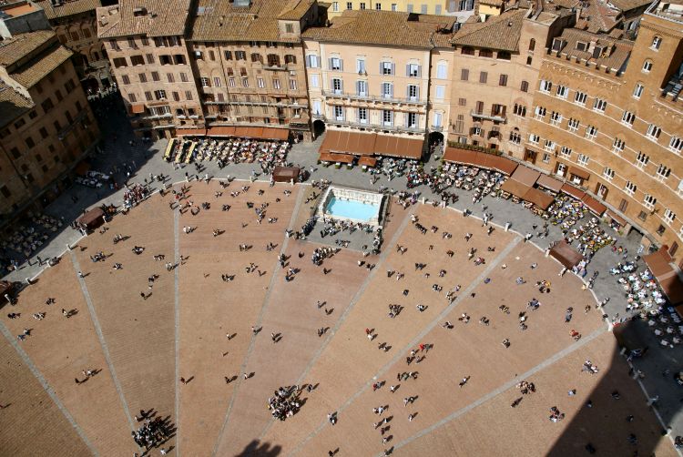 Siena Seit ich im Rheinland lebe, frage ich mich immer, wo er beim Überqueren der Alpen denn geblieben ist: der Sinn für Plätze, für Raum, für ein Ensemble, für gestalterische Zusammenhänge, kurz: der Sinn für eine schöne Stadt. Ich gehe durch Köln und angesichts des Kölner Doms stolpere ich über ein Verbrechen wie die Nord-Süd-Fahrt, ich fahre mit dem Zug aus Düsseldorf raus Richtung Duisburg und schaue mitten in Düsseldorf auf ein Riesenareal, das aussieht, als hätten wir Sommer 1945 und die Amis sind mal eben Zigarettenpause machen, nachdem sie ein bißchen Rheinland plattgemacht haben, ich gehe durch Bonn auf der Suche nach dem Mehlemschen Haus und entdecke es zerquetscht von den Ausläufern der Kennedy-Brücke ein geducktes Hundehütten-Leben führen. Braucht es denn die mediterrane Sonne, um sich zu getrauen, einen Platz zu gestalten? Braucht es italienisch, um einen Springbrunnen plätschern zu lassen? Kann man nicht auch wenn man deutsch spricht, mit einem Platz zeigen, daß man zusammengehört? Hier, in dieser Stadt, in diesem Land? Warum sollen nur die Italiener Lust haben, Italiener zu sein und das zu zeigen, warum nicht auch wir? Warum haben wir keine Grundstücksbesitzer, die, zusammen mit anderen, auf ein paar Meter verzichten, um an einer Ecke Luft zu schaffen, den Menschen eine Erholung zu bieten, dem Auge Raum zu gönnen und alles das nur, damit man sagen kann: ist es nicht schön, unser Bonn, unser Köln, unser Düsseldorf? Was hat unsere Stadtoberen – besonders im Rheinland, leider – daran gehindert, Plätze zu schaffen, einfach mal ein paar Blocks nicht bauen zu lassen? Angst vor der Versammlungsfreiheit? Natürlich sind Plätze dazu da, daß man sich auf ihnen versammeln kann, aber ist das nur toll, wenn es woanders passiert? Solche Plätze sind, zu Recht, legendär geworden: der Wenzelsplatz, der Petersplatz, der Platz des himmlischen Friedens, der Tahrir-Platz, um nur einige zu nennen. Brunnen machen Städte schön, Treppen schmücken sie, aber Plätze machen Städte erst zur Stadt. War in der Antike der Platz noch die Agora, auf der man sich traf und damit war die Funktion, mehr oder weniger, auch schon erschöpft, oder sie war der Truppenversammlungsplatz, mit dem die Römer ihren Feinden zeigen konnten, wie viele sie sind und daß es da ja wohl keinen Zweck habe, Widerstand zu leisten, hat die Renaissance in Italien dem Platz eine heitere Funktion gegeben: er ist in der Zeit, die den Menschen entdeckte und damit sich aus der Knechtschaft der Kirche befreite, zur säkularen Kathedrale geworden. Der Platz steht jedem offen, er ist das Symbol für die Zusammengehörigkeit einer Stadtgemeinschaft. Jeder ist Sienese, der in Siena wohnt, egal, ob er Christ ist, Jude, Moslem oder Anhänger von Savonarola. Er ist Sienese, er zeigt sich auf der Piazza del Campo, er trifft sich auf der Piazza del Campo, er demonstriert auf der Piazza del Campo, er jubelt auf der Piazza del Campo. Wo ist die Piazza del Campo in Köln, in Bonn, in Düsseldorf? Warum sind so viele wunderbare Errungenschaften einfach jenseits der Alpen geblieben? Oder sollte ich lieber sagen: diesseits? Das würde voraussetzen, daß ich zurück ginge. Ist ein Platz so wichtig? Ich meine: bin ich Sienese? Ich hab ihn im Kopf, ihn und andere Plätze, in meiner kleinen Sammlung von großen Plätzen dieser Welt, und das langt mir – im Moment.