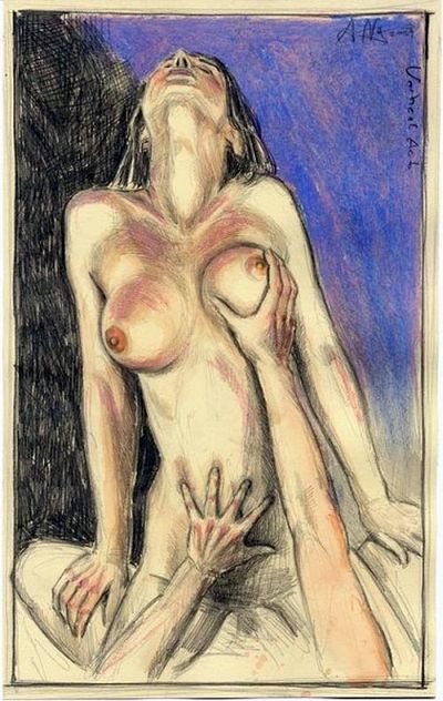 Das Jahr ist beinahe noch jung, weshalb sich ein ganz kleiner Hinweis auf einen Wandkalender mit erotischer Graphik noch lohnt: Andreas Noßmann (*1962), Schüler von Gerd Aretz, Wil Sensen und Michael Badura hat für seinen Kalender „Aus einem erotischen Tagebuch“ (2014) auf zwölf Monatsblättern Bilder der Verlockung, des Liebesaktes, der unverhohlenen Lust veröffentlicht. Während der Mann gesichtslos quasi nur als unverzichtbares Werkzeug der weiblichen Lust agiert, hat Noßmann sich auf den Blättern intensiv der Darstellung des Ausdrucks weiblicher Lust - natürlich aus der Sicht des Mannes - und der Verlockung der weiblichen Körperlichkeit gewidmet. Nicht die Zärtlichkeit, sondern die pure Lust am agressiven Akt steht auf allen Bildern im Vordergrund.