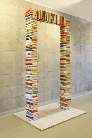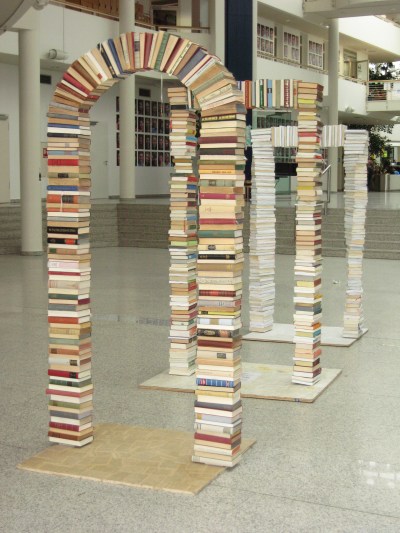 Die Bauzeit betrug ein Jahr. In den drei Toren sind über 500 Bücher verbaut. Das Alter der Bücher spielte keine Rolle.