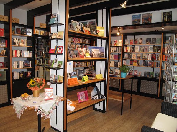 Kerstin Hardenburg setzt auf Qualität, weshalb sie auch die Literatur-Jahresschrift „Karussell“ und die ebenfalls im Verlag HP Nacke erscheinende Kulturzeitschrift „Die Beste Zeit“ in ihr Sortiment aufgenommen hat. In einem kleinen Kabinett neben dem Sortiment ist um ein Geringes auch eine Auswahl antiquarischer Bücher zu haben.
