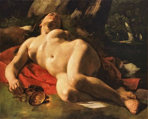 Angesichts des Übergewichts von Darstellungen gequälter, leidender und sterbender Leiber tritt in der Ausstellung der komplementär gedachte Aspekt körperlicher Schönheit und sinnlicher Freuden leider stark in den Hintergrund. Erwähnt seien nur der sog. Herakles Lansdowne aus der Zeit um 340 v. Chr., der als klassischer „Idealkörper“ in Erscheinung tritt, der hellenistische „Barberinische Faun“, der sich den Blicken in einer lasziven Pose darbietet (beide Skulpturen als Abgüsse des Bonner Akademischen Kunstmuseums), Gustave Courbets in einer unkonventionellen Perspektive gegebene nackte „Bacchantin“ aus den vierziger Jahren des 19. Jahrhunderts, deren erotische Reize der Künstler dezidiert zur Schau stellt, und Frédéric Bazilles proto-impressionistischer, am Ufer stehender „Fischer mit Netz“ von 1868, ein Rückenakt mit „unterschwellig homoerotischer Ausstrahlung“ (Susanne Blöcker“). Daß in der Ausstellung das 20. Jahrhundert krass unterrepräsentiert ist, dürfte den Interessen und Neigungen des Sammlers, Gustav Rau, geschuldet sein.