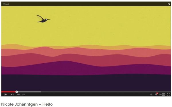 Kürzlich haben wir Ihnen hier die neue CD „Moncaup“ von Nicole Johänntgen vorgestellt. Dazu finden Sie auf ihrer Webseite ein zauberhaftes Video, das wir ihnen mit Überzeugung ans Herz legen möchten → Hello. Fünf Minuten, die sich lohnen. Viel Spaß!
