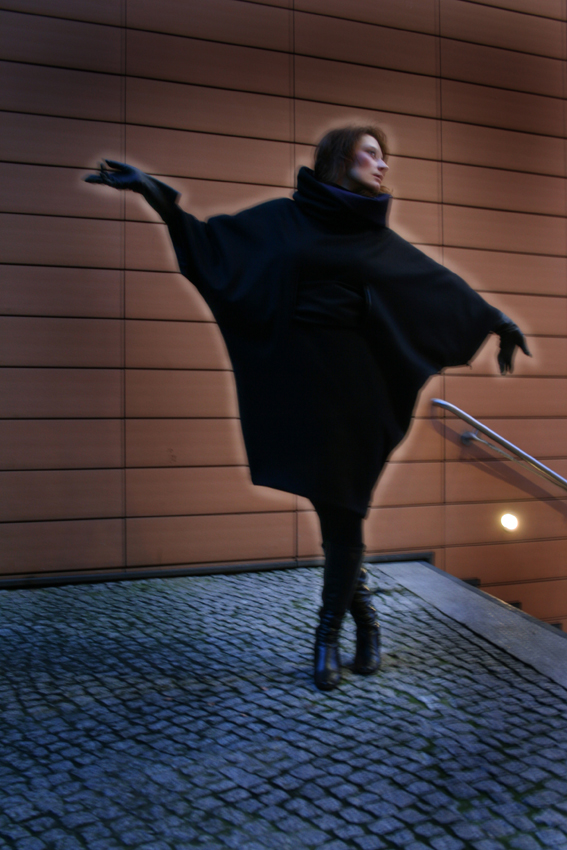 Dunkle Engel Diese Modeproduktion wurde von einer Gruppe Modedesigner des Lette-Vereins in Berlin entworfen. Die Bilder enstanden am 20. Januar 2007 am neu gestalteten Potsdamer Platz in Berlin. alinkas Fotografien thematisieren die Anonymität einer Großstadt und das Schutz suchende Einhüllen des Körpers. Die monastische Gestik und Haltung zeigen den Wunsch nach Schutz, Wärme und Intimität. Mit dem Surrealen der Bilder transportiert alinka die Intentionen der Modemacher. ![]() Modell: Kati - Typeface Berlin - Foto © alinka/Alina Gross ![]() Foto © alinka/Alina Gross ![]() Foto © alinka/Alina Gross ![]() Foto © alinka/Alina Gross ![]() Foto © alinka/Alina Gross |