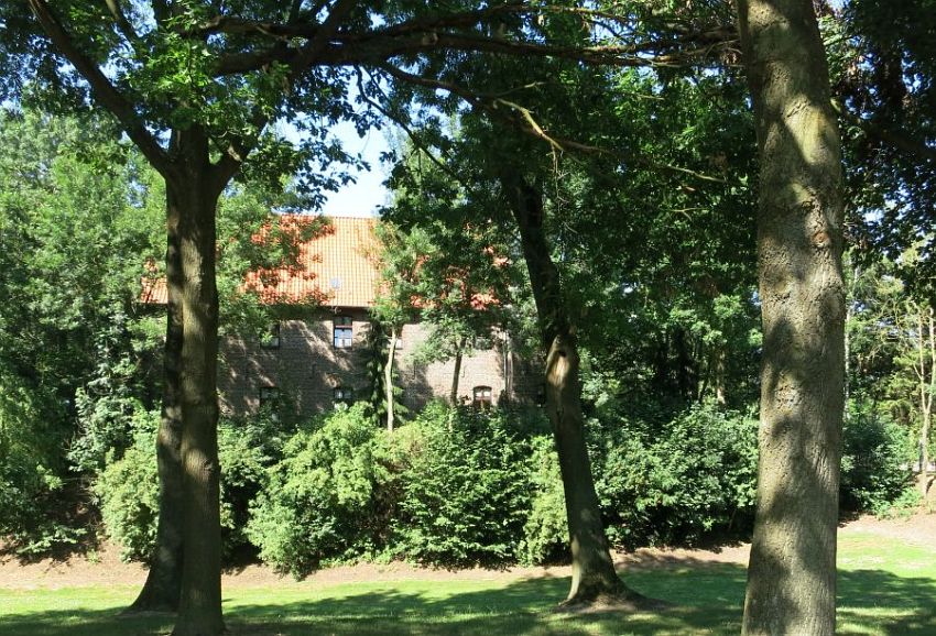 Dieses idyllische Bild vom Wasserschloß Haus Paland in Borschenich wird bald von den gigantischen Baggerschaufeln von Rheinbraun für den zweifelhaften Braunkohletagebau zerstört. Schauen Sie also noch einmal hin. |