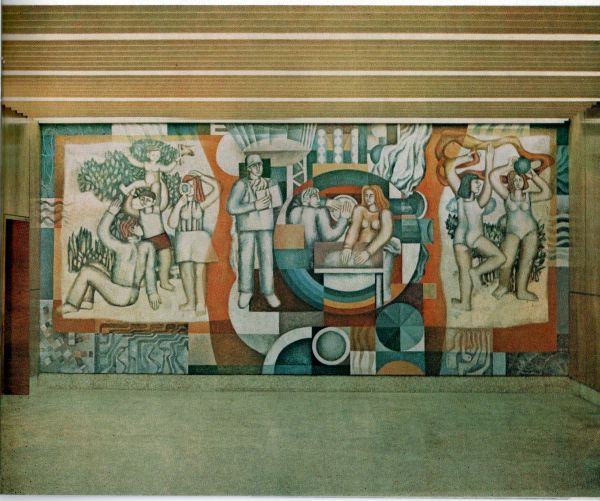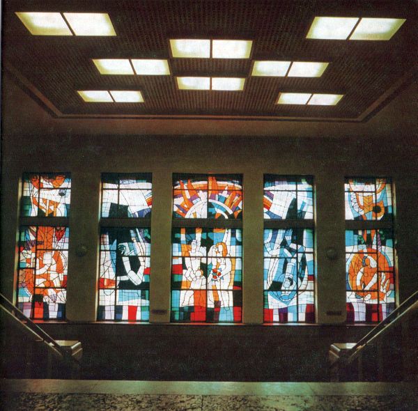 Mit der Neugestaltung wurde der bekannte westdeutsche Maler Karl Otto Götz beauftragt, der ein Werk in gestischer Manier von wenig beeindruckender Farbgebung schuf - wohl ein Gefälligkeitsauftrag. Übrigens wurde Frau Anna schon wenig später von ihrem Direktorenposten von der Stadt Chemnitz abberufen.