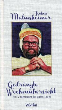 Den Titel dieser bunten Sammlung verdanken wir seiner Oma Nellie Winter, die ihn und seine Geschwister vor vielen Jahren einmal wöchentlich mit einer, ihrer Bochumer Spezialität verwöhnte, wenn sie am Samstag ihre „Gedrängte Wochenübersicht“ auf den großmütterlichen Tisch brachte. So wie diese lecker zubereiteten Reste der Woche, kräftig gewürzt und angereichert, den Blagen damals schmeckten, geht es heute dem Leser dieses Buches, das Malmsheimer nicht ohne Grund genau nach dieser Köstlichkeit betitelt hat, eben „Gedrängte Wochenübersicht“. Was aus den letzten Jahren und Bühnenprogrammen so übrig war, kam gut durchmischt zwischen zwei edel leinerne Buchdeckel und ist geeignet, manchen Appetit auf sprachliche Äquilibristik und verbalen Jokus zu befriedigen. Es ist mit seinen Schnurren und Possen und seiner abenteuerlichen Wortartistik nebst „Nachreichungen und Dreingaben, Stil- und Fingerübungen ein höchst amüsanter Kessel Buntes oder wie es der Autor selber nennt „Ein Vademecum der guten Laune“ geworden.