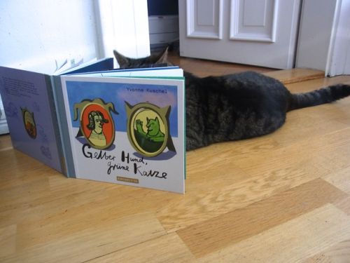 „Wie Hund und Katz“ – das heißt soviel wie „geht gar nicht“. Daß es nicht unbedingt so sein muß, erzählt Yvonne Kuschel in ihrem sanft humorvollen Bilderbuch „Gelber Hund, grüne Katze“, einer Parabel über das Alleinsein, die Suche nach dem schöneren Leben und das zufällige Finden von Freunden.