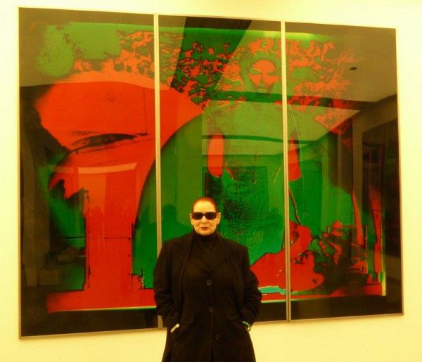 Alle drei Motive sind doppelt ausgeführt mit deutlichen Farbnuancen, unterschiedlich vergröbernden Projektionen oder gespiegelt. Kampf der Geschlechter, Gewalt gegen Menschen, atomare Bedrohung—„Norad I - VI“ sind Bilder latenter Kampfsituationen. Sie entstanden vor 36 Jahren, sind aber heute so aktuell wie damals. Im Gespräch weist Katharina Sieverding auf die Krisen unserer Tage hin, von Rußland über den Nahen Osten bis nach Asien.