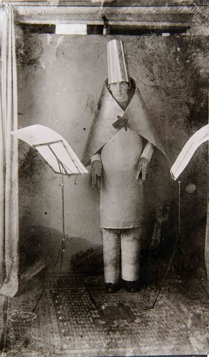Kurz nach der Dada-Gründung im legendären „Cabaret Voltaire“, das anfänglich noch „Künstlerkneipe Voltaire“ hieß, notierte Hugo Ball in seinem Tagebuch: „Der Dadaist liebt das Außergewöhnliche, ja das Absurde. [...] Da der Bankrott der Ideen das Menschenbild bis in die innersten Schichten zerblättert hat, treten in pathologischer Weise die Triebe und Hintergründe hervor. Da keinerlei Kunst, Politik oder Bekenntnis diesem Dammbruch gewachsen erscheinen, bleibt nur die Blague [= Jux, Ulk] und die blutige Posse.“ In unmittelbarer Nachbarschaft zu Lenin, der in Zürich zur gleichen Zeit die Revolution des Proletariats im zaristischen Russland plante, probten die Zürcher Dadaisten ohne konkretes politisches Programm den Aufstand gegen die bürgerliche Gesellschaft, ihr Wertesystem und Ordnungsgefüge, gegen Nationalismus und Patriotismus, gegen die „Schlächtereien des Weltkriegs“ (Hans Arp), gegen die Macht der Ratio und das Diktat der Logik. Bei ihren Auftritten im Cabaret Voltaire bedienten die sich dabei aller erdenklichen Formen einer Antikunst, die inzwischen längst als Kunst nobilitiert ist, damals aber meist als schockierend erlebt wurde. Nicht die bildende Kunst stand bei den Dada-Soiréen anfänglich im Mittelpunkt, sondern das Literarische, Musikalische, Tänzerische und Szenische, kurz, performative Praktiken, wie sie sich erst rund ein halbes Jahrhundert später mit Happening, Fluxus und anderen Formen intermediärer Aktionskunst etablierten. Aufgeführt wurden bruitistische Musik und improvisierte Maskentänze – die Rekonstruktion einer dieser Masken wird in der Ausstellung gezeigt –, rezitiert wurden semantisch sinnlos erscheinende Laut- und Simultangedichte, dem Zufall als Offenbarung des Unbewussten waren Tür und Tor geöffnet, Hugo Ball trat in „kubistischer Kartonverkleidung mit zylindrischem Schamanenhut“ (Raimund Meyer) auf die Bühne.