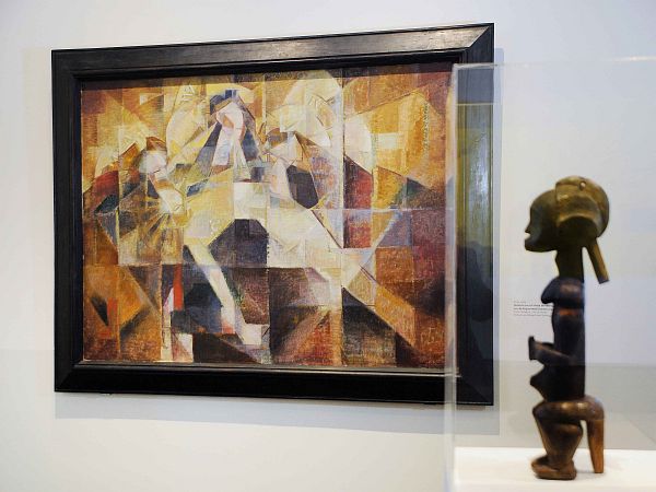 Der Besucher der Ausstellung kann diese beiden Gegenwelten, die sich zugleich in einem komplementären Verhältnis zueinander befanden, nun im Arp Museum unter einem Dach in unmittelbarer räumlicher Nähe inspizieren. Zwei Kuben bilden den Kern der Ausstellung. Der eine birgt eine (Teil-)Rekonstruktion des Cabaret Voltaire mit Bühne und Klavier, der andere einen Raum der Galerie Dada mit bürgerlichem Kamin sowie an den Wänden Werken der damaligen Künstleravantgarde (u.a. Chiricos „The Evil Genius of a King“ von 1914/15) und eine schwarzafrikanische Plastik in der Raummitte. Das alles ist sehr bemüht und gut gemeint. Emotional vermag es aber kaum zu berühren, da in diesen museal-sterilen Kuben keinerlei Leben ist, also vom revolutionären Elan der Dada-Gründer, von ihren provozierenden Inszenierungen, von der normverletzenden Sprengkraft ihrer Darbietungen, von ihrem entlarvenden Spiel, so gut wie nichts mehr spürbar ist. Und daß im Arp Museum anstatt von Originaldokumenten wie Fotos, Programmzetteln und sonstigen Drucksachen häufig nur auf die Schauwände kaschierte Kopien zu sehen sind und der Ausstellung damit gelegentlich die sinnliche Präsenz und die Aura des Authentischen abhanden kommt, tut ein Übriges, um dem heutigen Betrachter den affektiven Zugang zum ohnehin nur bedingt darstellbaren Geschehen jener „heroischen Phase“ des Dadaismus zu erschweren. Um hier nachzuhelfen, dürfte die Lektüre des materialreichen Katalogbuches gute Dienste tun.
