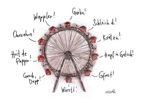 Wer sich vor Ort in die Kunst des Wiener Schimpfens einführen lassen möchte, kann das bei einer Buchpräsentation am 5. Mai 2016 um 19:30 Uhr im Club der Komischen Künste im MQ.