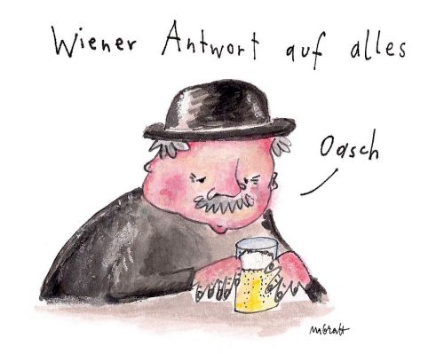 Die Wiener Antwort auf alles sei „Oasch“, behauptet das handliche kleine Bändchen, das sich anmaßt, den Leser dahin zu führen, wie ein echter Wiener schimpfen zu können. Also, ich möchte das wirklich allzu gerne können, habe ich doch als leuchtendes Beispiel immer den Bezirksinspektor Wirz (Kurt Jaggberg) aus dem Tatort Wien vor Augen (und Ohren). Jaggberg (1922-1999) war ein waschechter Wiener von einem Schrot und Korn, wie es weiland auch Kurt Sowinetz (1928-1991) und Helmut Qualtinger (1928-1986) waren, ebenfalls Meister der Wiener Sprache und ihres ordinärsten Ausdrucks.
