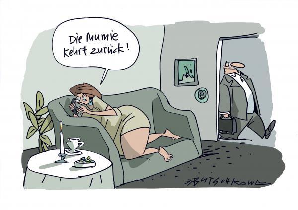 Überaus eleganter Strich, genaue Beobachtung, auf den Punkt gesetzte Pointen, sanfte Ironie und vergnügtes Augenzwinkern zeichnen die Cartoons aus, mit denen Peter Butschkow seine, meine und Ihre bürgerliche Welt nebst ihren Zeiterscheinungen vortrefflich auf die Schippe nimmt. Bild und Text bilden in Perfektion die Einheit des feinen Spotts, die dies ganz gewisse glucksende Lachen aus uns herauslockt. Das macht dann so richtig Spaß, wenn man sich und natürlich noch lieber andere Menschen und ihre Marotten, Angebereien, Heucheleien, heimlichen Leidenschaften, kleinen Lügen und anderen Alltäglichkeiten entdeckt.