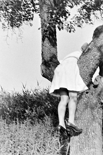 Einer hat bisher gefehlt, doch diese Lücke ist nun geschlossen: „Frauen auf Bäumen“ stellt ein gleichnamiges Büchlein vor, s/w-Fotografien, die der Sammler Jochen Raiß (*1969) auf seinen Flohmarktstreifzügen entdeckt hat. Aus Kisten hat er sie aufgegabelt: Fundstücke aus 30 Jahren privater Fotoalben zwischen Jux und Poesie, Artistik und Arboretologie, in denen sich zahlreiche Momentaufnahmen aus fremden Leben fanden – hier: anonyme Schnappschüsse von mal schneidigen, mal koketten Frauen auf Bäumen. Wie bitte? Frauen auf Bäumen? Ja, da mußte drauf kommen! Raiß hat die enorme Bedeutung dieses Sujets erkannt und in 52 vielleicht nicht wissenschaftlich bedeutsamen, so doch aber höchst amüsanten Beispielen dokumentiert. Allerdings schummelt er in zwei verzeihlichen Fällen, wenn nämlich eine Dame lediglich auf einem Baumstumpf balanciert und im anderen Fall ein Telegrafenmast (!) als Baum ausgegeben wird. Alles in allem ist es ein ziemlich einzigartiges Dokument der Geschichte der Fotografie, zeigt es doch, daß entweder die Kerle ihre Mädels einzeln oder in ganzen Gruppen auf die Bäume gejagt haben oder aber jene bei der Foto-Pirsch von namenlosen Ethnologen dort oben entdeckt wurden. Gleichwie – ein lustiges Buch.
