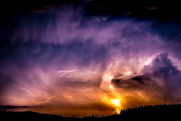 Blitze fallen. Donner rollen. Kommt, wir wollen