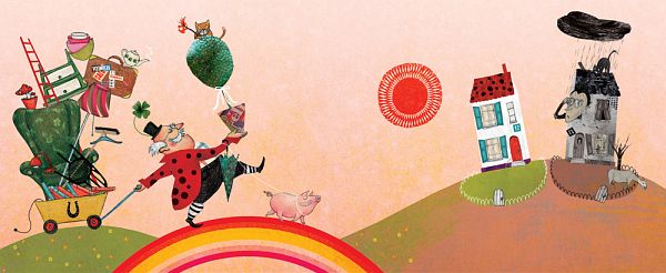 In ihrem düsteren Haus im wolkenverhangenen, grauen Garten lebt Frau Unglück. Eines Tages bekommt sie einen neeen Nachbarn, Herrn Glück. Der kennt keine schlechte Laune, begrüßt am Morgen die Sonne, am Abend den Mond und die Sterne und zieht vor seiner miesepetrigen Nachbarin freundlich den Hut. Seinen Garten verwandelt er diesseits des Zauns in eine Oase der Lebensfreude mit Blumen, Schmetterlingen und Sonnenschein. Das aber gefällt Frau Unglück gar nicht. Sie würde den liebenswerten Nachbarn gerne vertreiben und versucht nach Kräften, ihm das Leben zu vermiesen. Was glauben Sie? Richtig: weil es eine schöne Geschichte ist, kann es ihr nicht gelingen. Ganz im Gegenteil… Eine zauberhafte Geschichte über das Glück und darüber, wo es zu Hause ist, zu der Antonie Schneider den Text geliefert hat.
