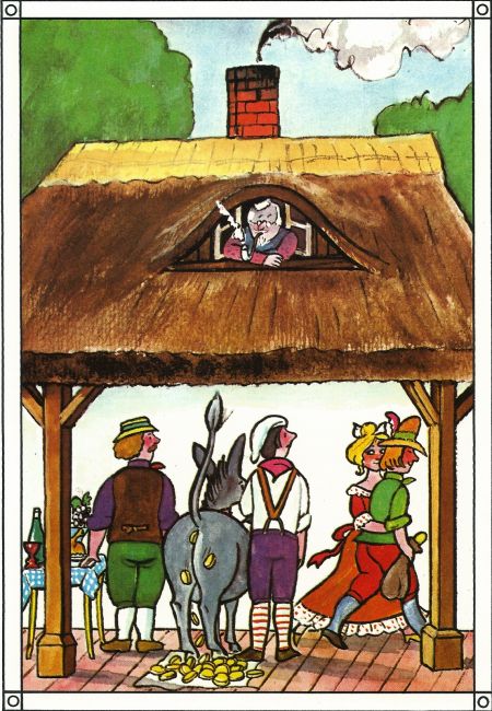 Tischlein deck dich, Goldesel streck dich und Knüppel aus dem Sack „Sage ich Knüppel aus dem Sack, so springt der Knüppel heraus und ...“ Thomas Schleusing pinx. - © Brigitte Schleusing