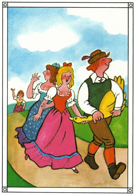 Die goldene Gans Endlich kam auch die Dritte in gleicher Absicht. Da schrien die andern: „Bleib weg, um Himmels willen, bleib weg.“ Aber sie begriff nicht, warum sie wegbleiben sollte, dachte: Sind die dabei, so kann ich auch dabeisein. Thomas Schleusing pinx. - © Brigitte Schleusing